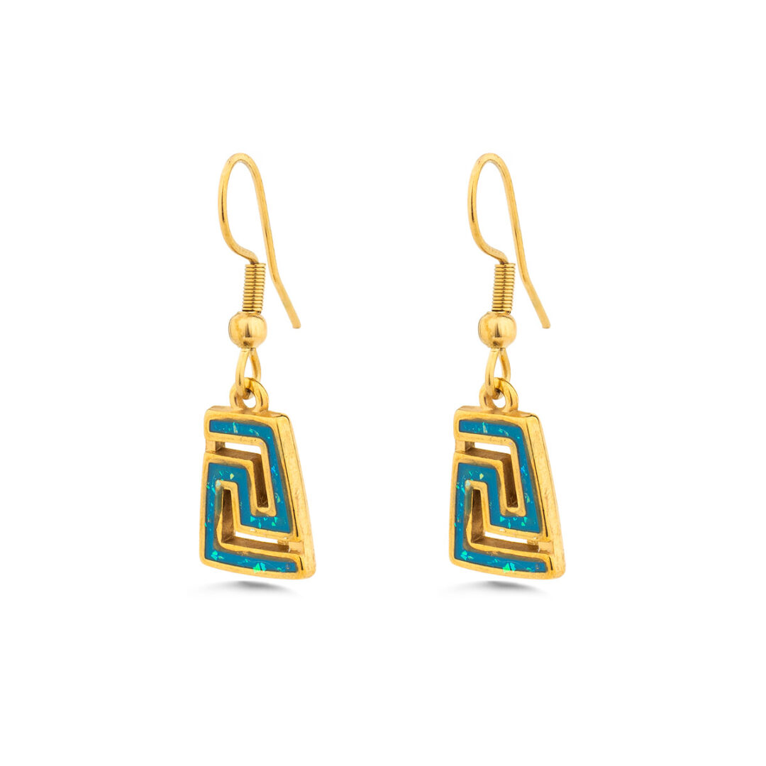 Meander Dangle Earrings with Ocean Blue Details in Stainless Steel