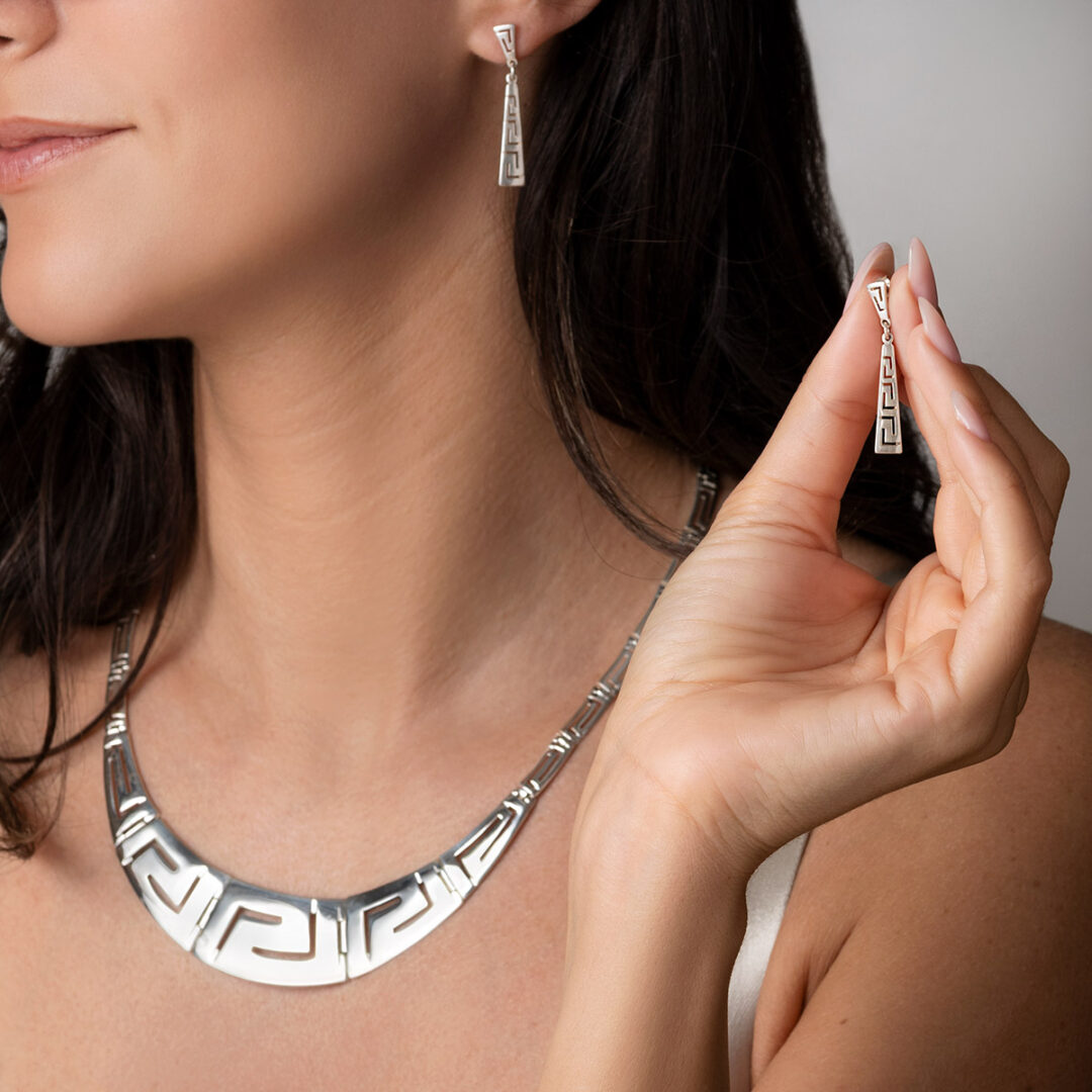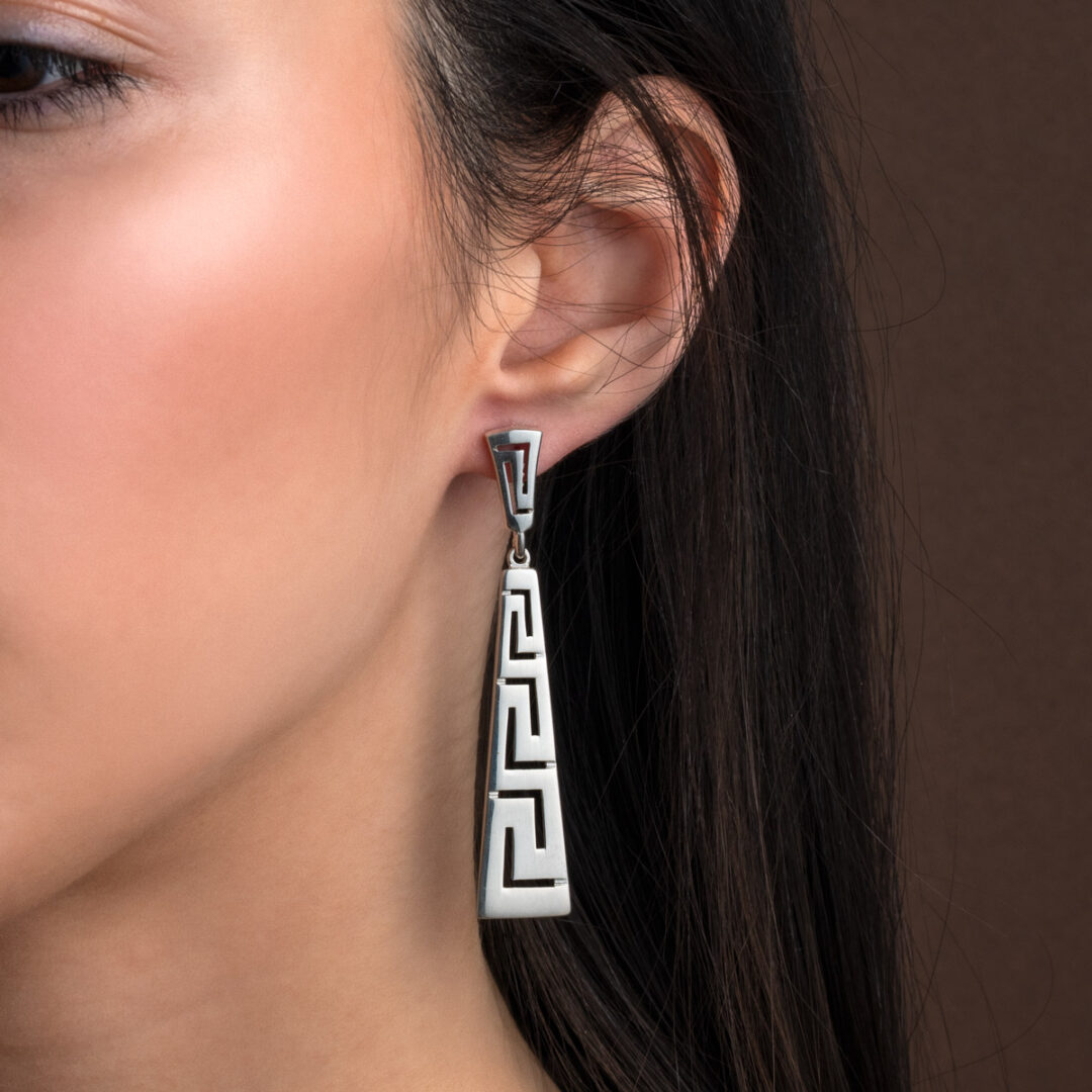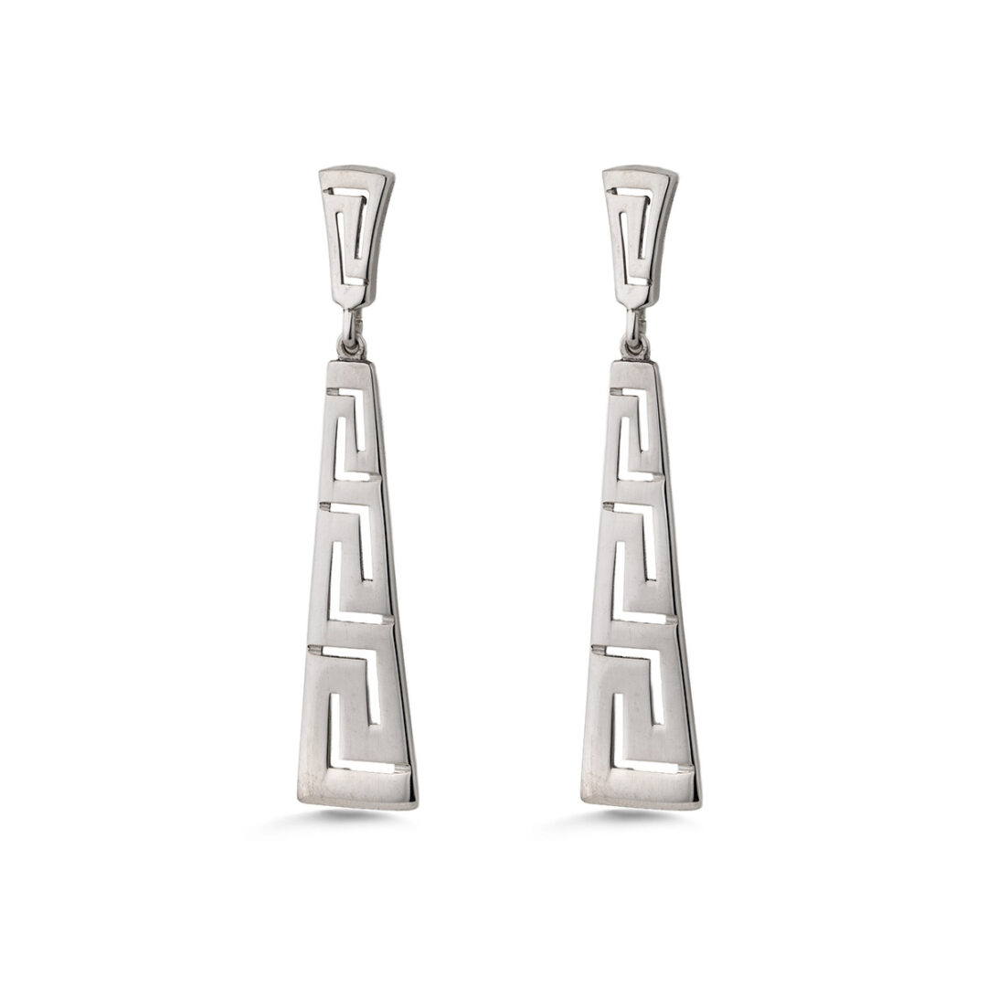 Greek Key Dangle Earrings Silver 925