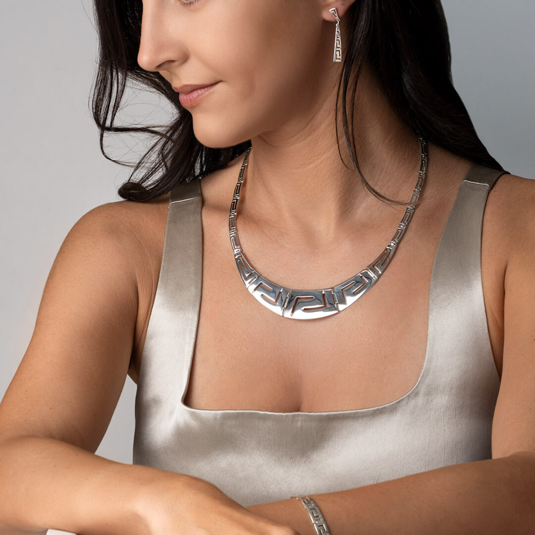 Meandros design is a decorative border constructed from a continuous line, shaped into a repeated motif. Such a design is also called the Greek fret or Greek key design, although these are modern designations. On the one hand, the name “meander” recalls the twisting and turning path of the Meander River in Asia Minor, and on the other hand, as Karl Kerenyi pointed out, “the meander is the figure of a labyrinth in linear form” the meaning is that there is no beginning and no end in some cases so it becomes the symbol of long life and eternity.