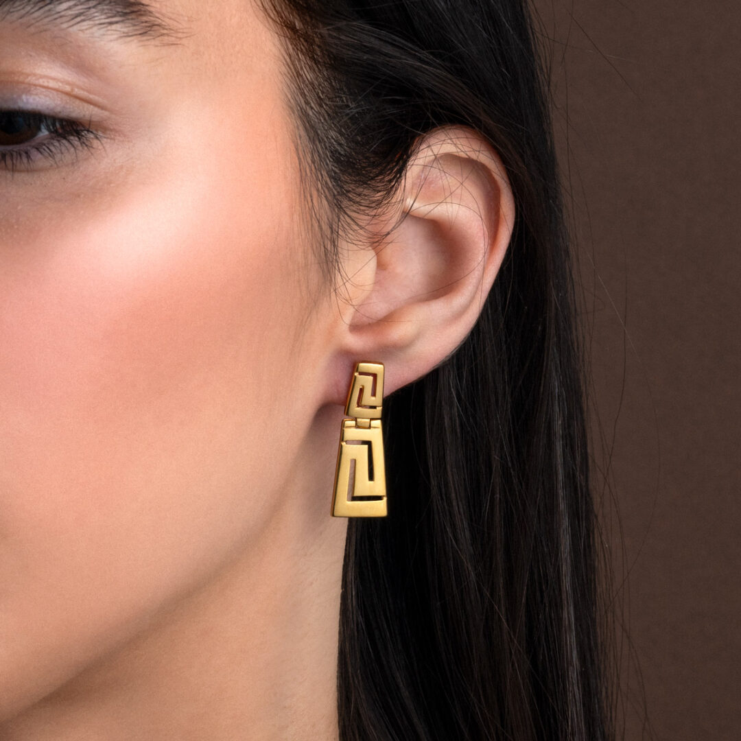 Earrings inspired by the Greek Key meander symbol.
