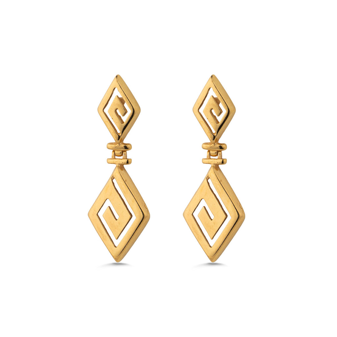 Meander Rhombus Drop Earrings – Sterling Silver 925 Gold Plated