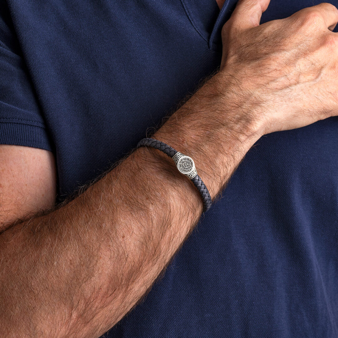 Minoan Phaistos Disc Leather Bracelet – 925 Sterling Silver