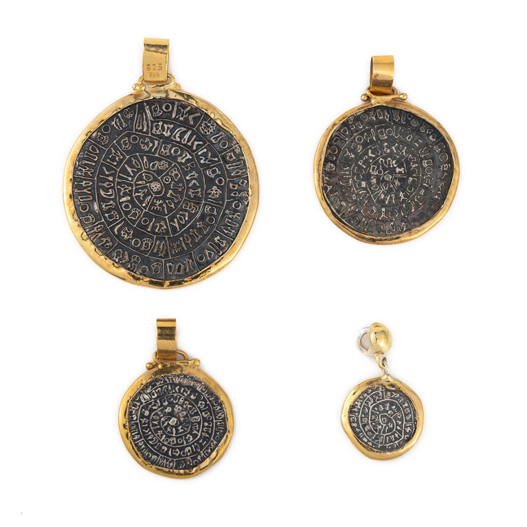 Minoan Phaistos Disc Pendant in 14kt gold and 925⁰ sterling silver.