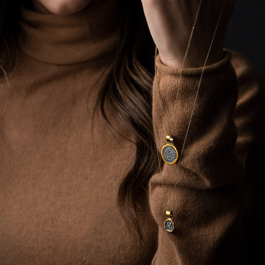 Minoan Phaistos Disc Pendant – 14k Gold and Sterling Silver