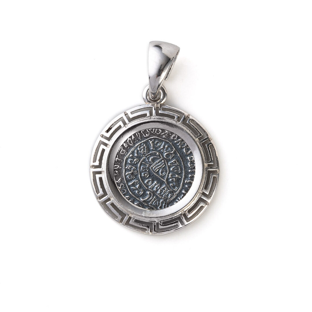 Minoan Phaistos Disc Pendant with Meander Bezel – 925 Sterling Silver