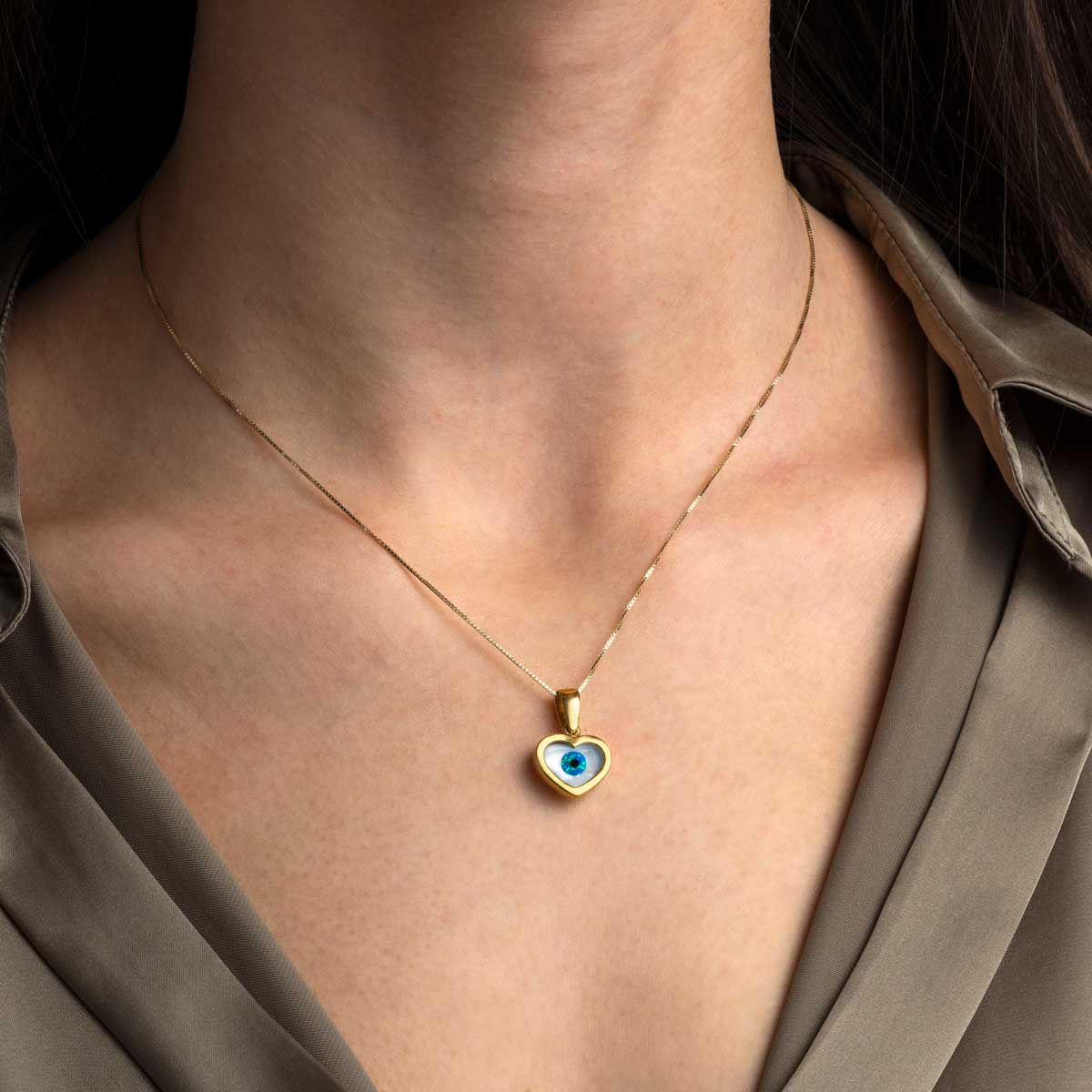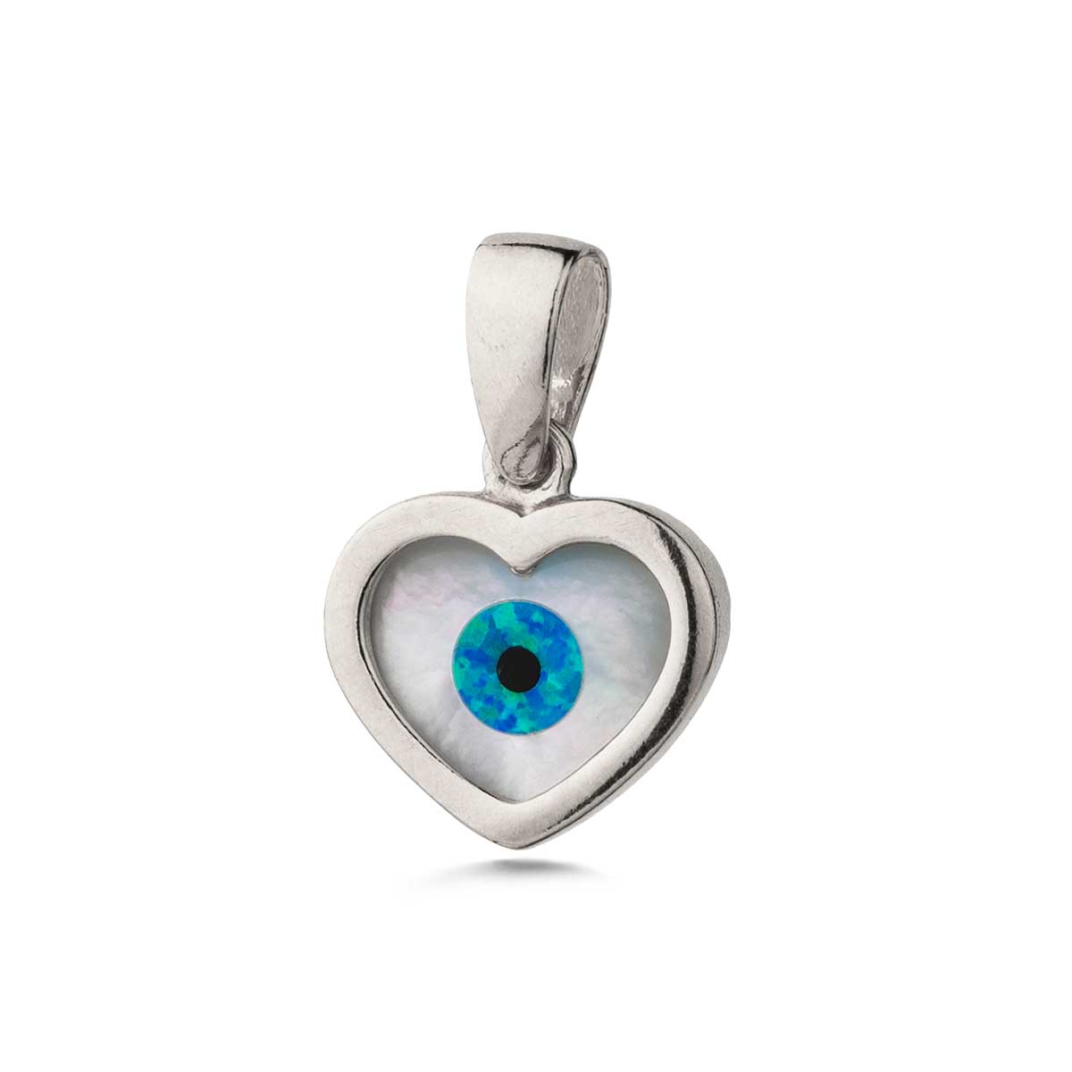 Mother of Pearl Heart Evil Eye Pendant 925 Sterling Silver Gold Plated