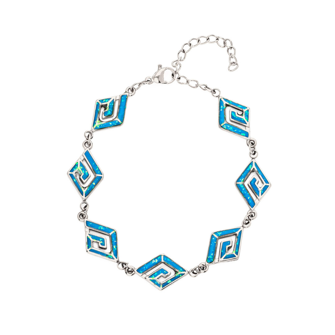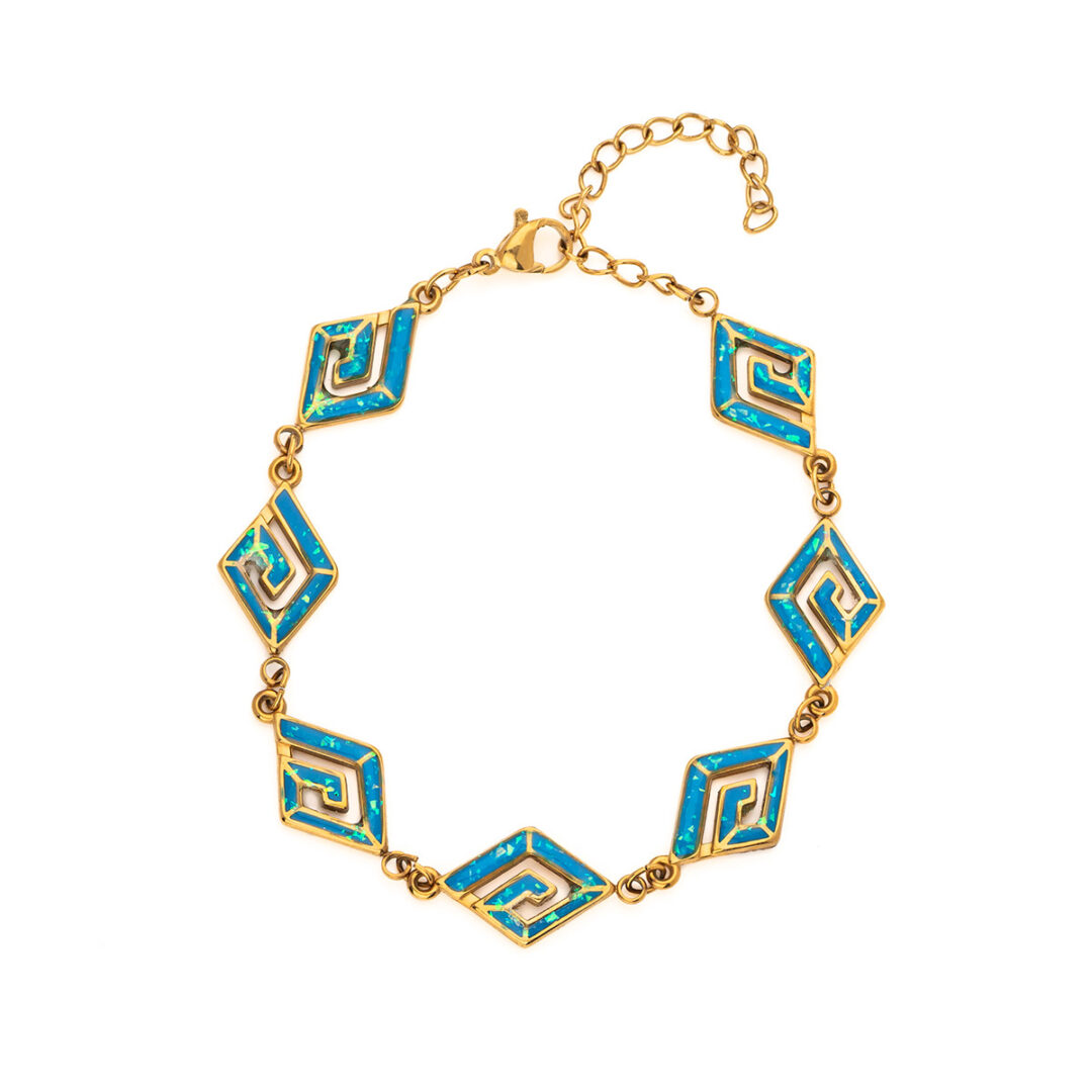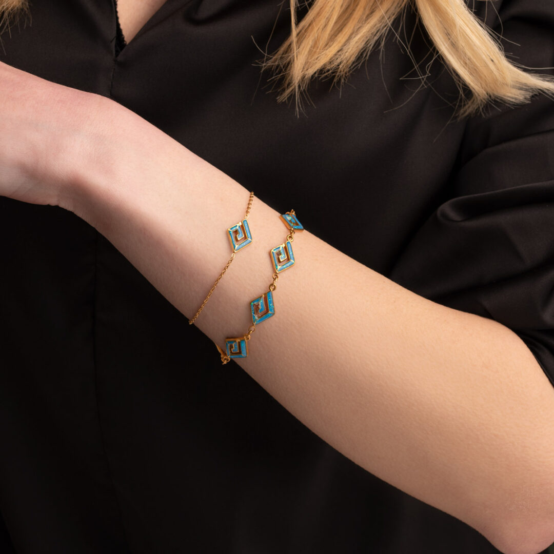 Multi Greek Key Bracelet with Ocean Blue Details in Stainless Steel