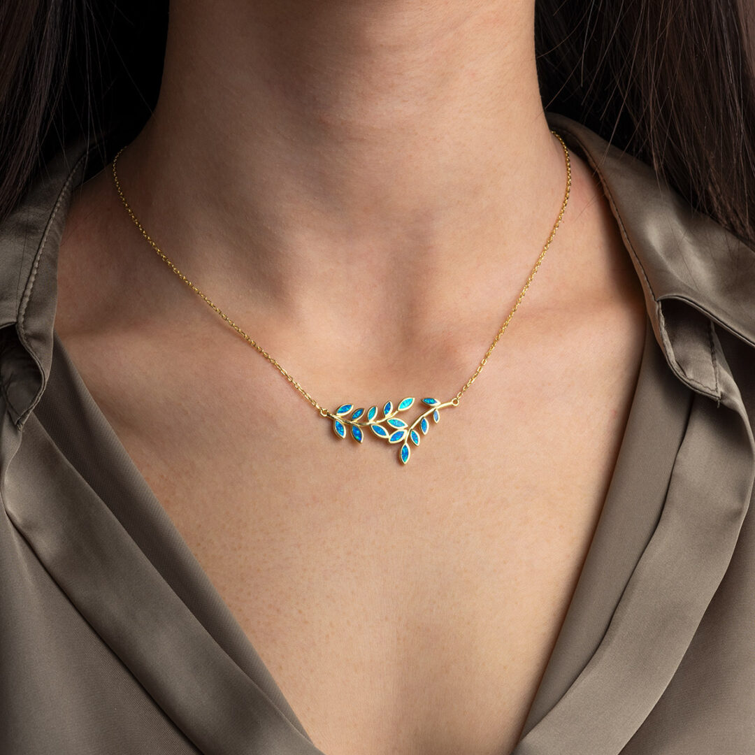 Opal Olive Branch Necklace – Sterling Silver with Gold Plating