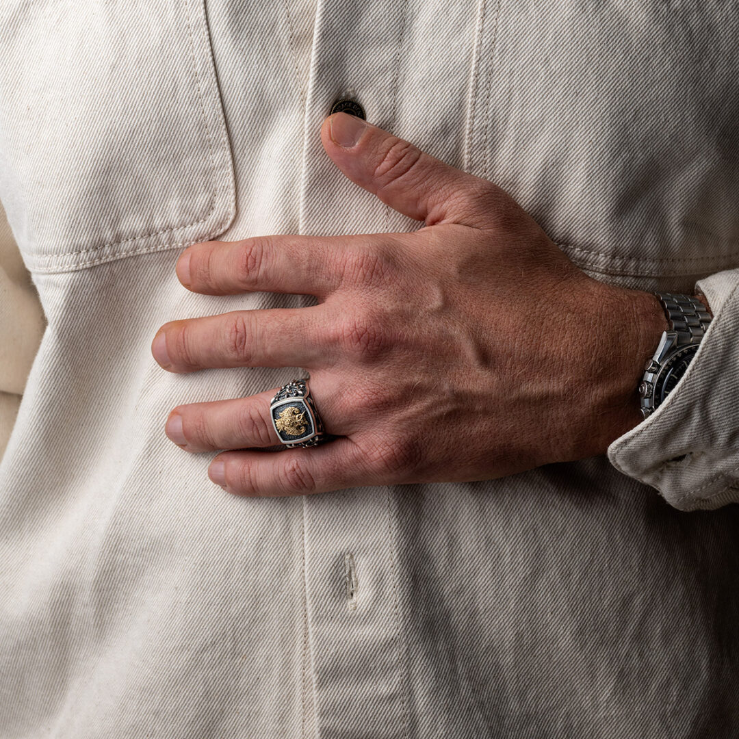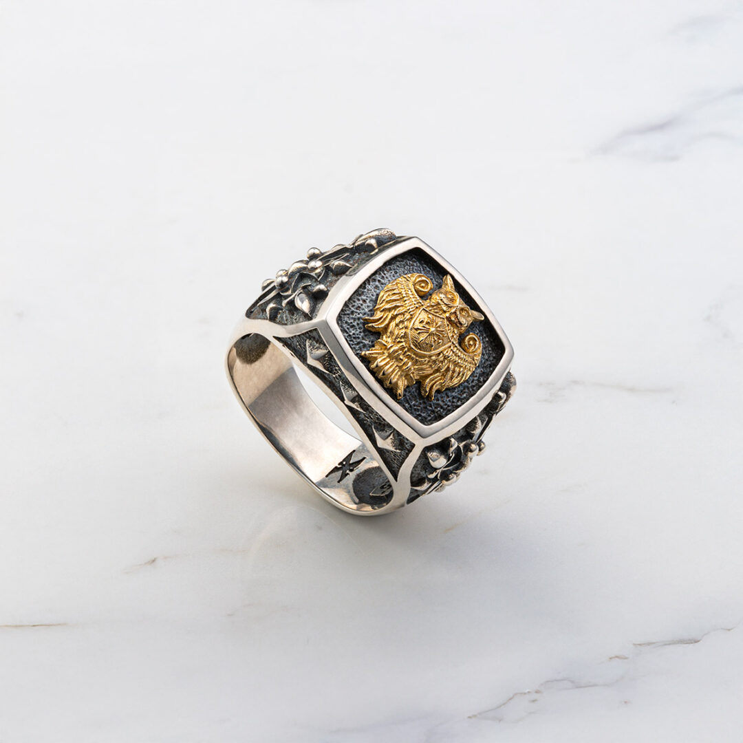 Owl Ring – 14k Solid Gold & Sterling Silver