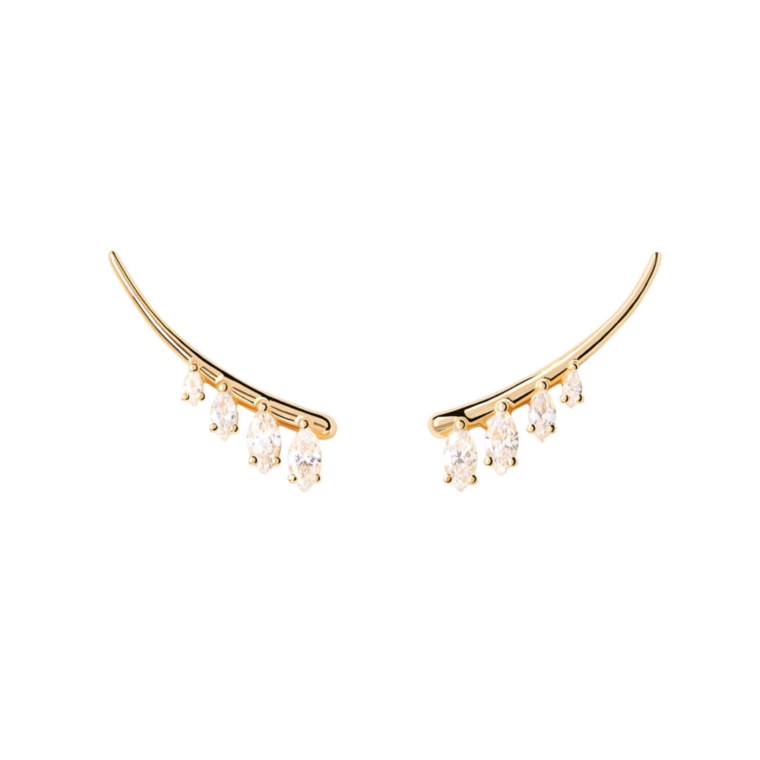 The Aqua Climbing earrings have four white fixed zirconia pendants in differents sizes, made with silver and 18K gold plating.