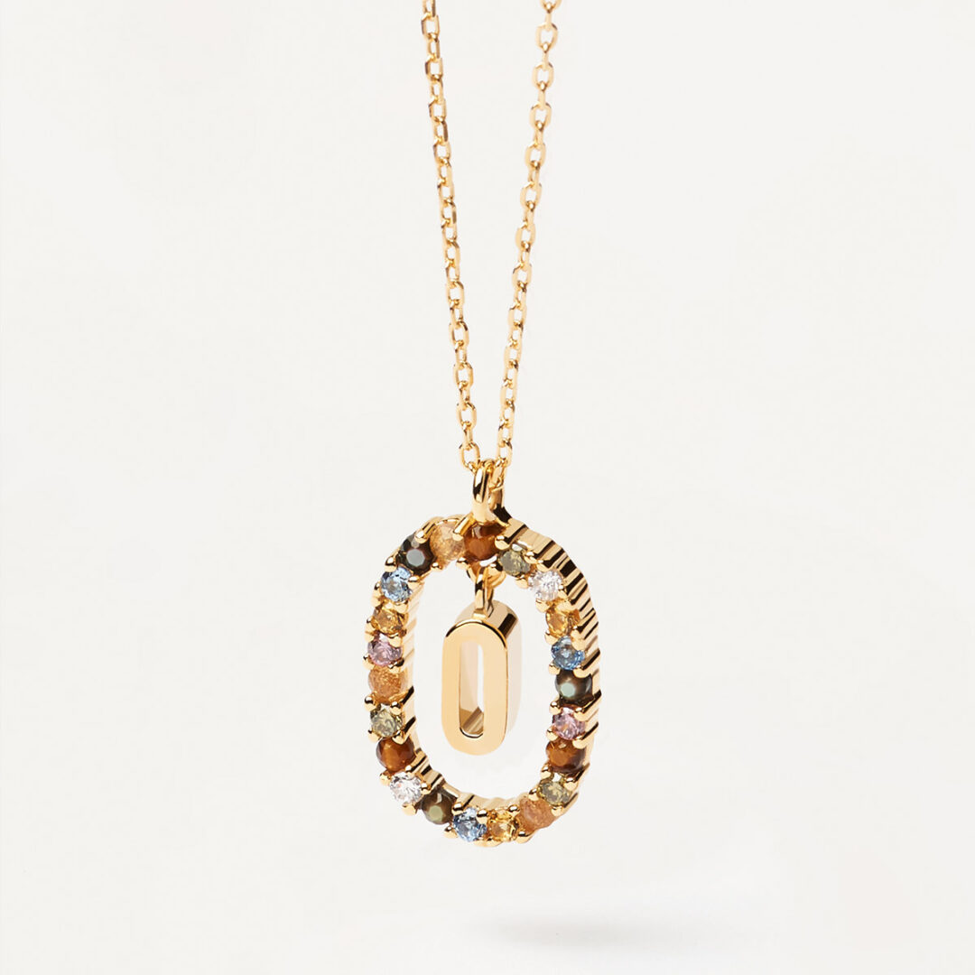 Labradorite, Tiger Eye, Mother of Pearl and crystals blend in a bright squarish oval that saves your initial like a treasure, giving life to a necklace design that will become the timeless icon of your own. Like floating in the air, an 18k gold plated initial hangs inside the amulet, a prominent piece made of 925 silver as your ultimate bold statement. Surrounding color hues and veins in the natural gemstones are singular characteristics in each necklace, making every letter genuinely unique in the world.