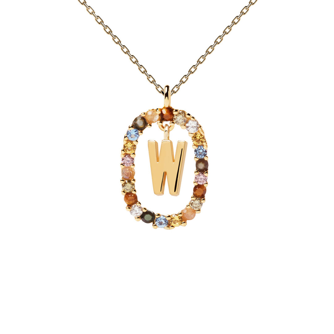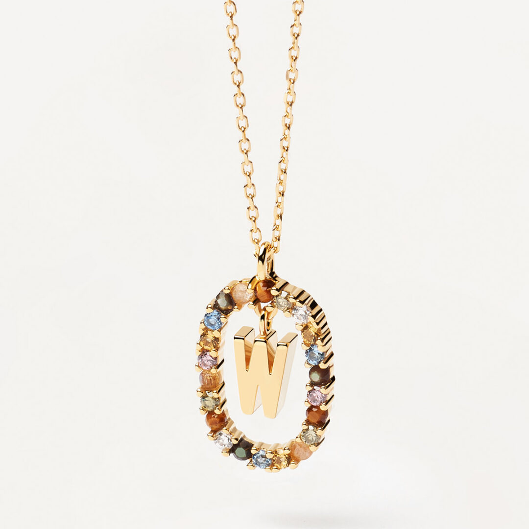 Labradorite, Tiger Eye, Mother of Pearl and crystals blend in a bright squarish oval that saves your initial like a treasure, giving life to a necklace design that will become the timeless icon of your own. Like floating in the air, an 18k gold plated initial hangs inside the amulet, a prominent piece made of 925 silver as your ultimate bold statement. Surrounding color hues and veins in the natural gemstones are singular characteristics in each necklace, making every letter genuinely unique in the world.