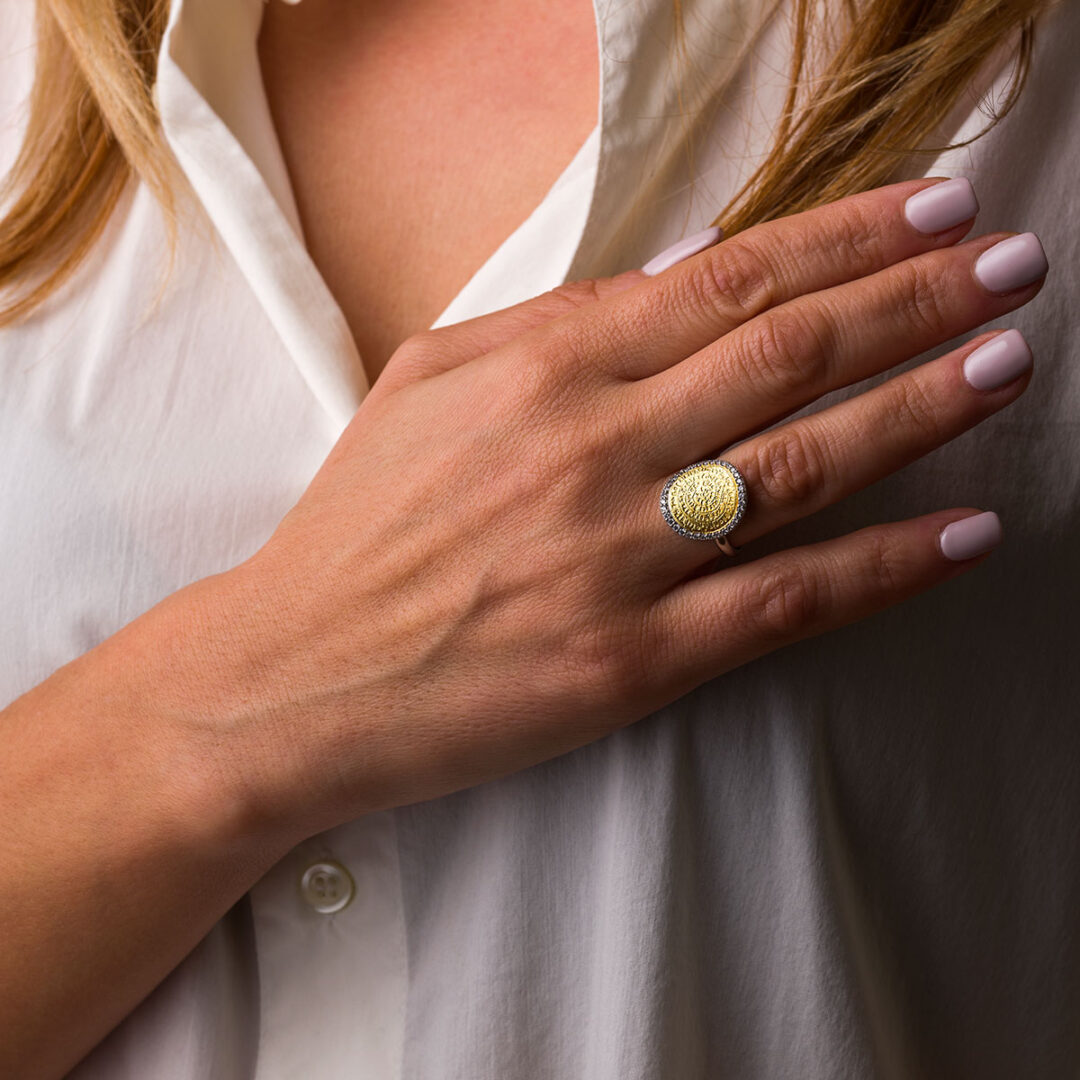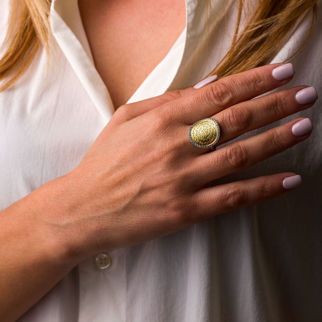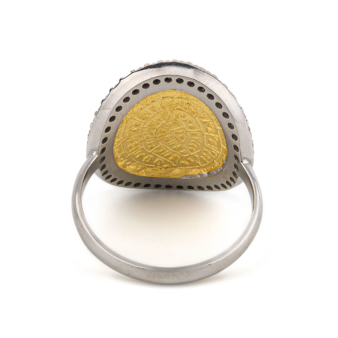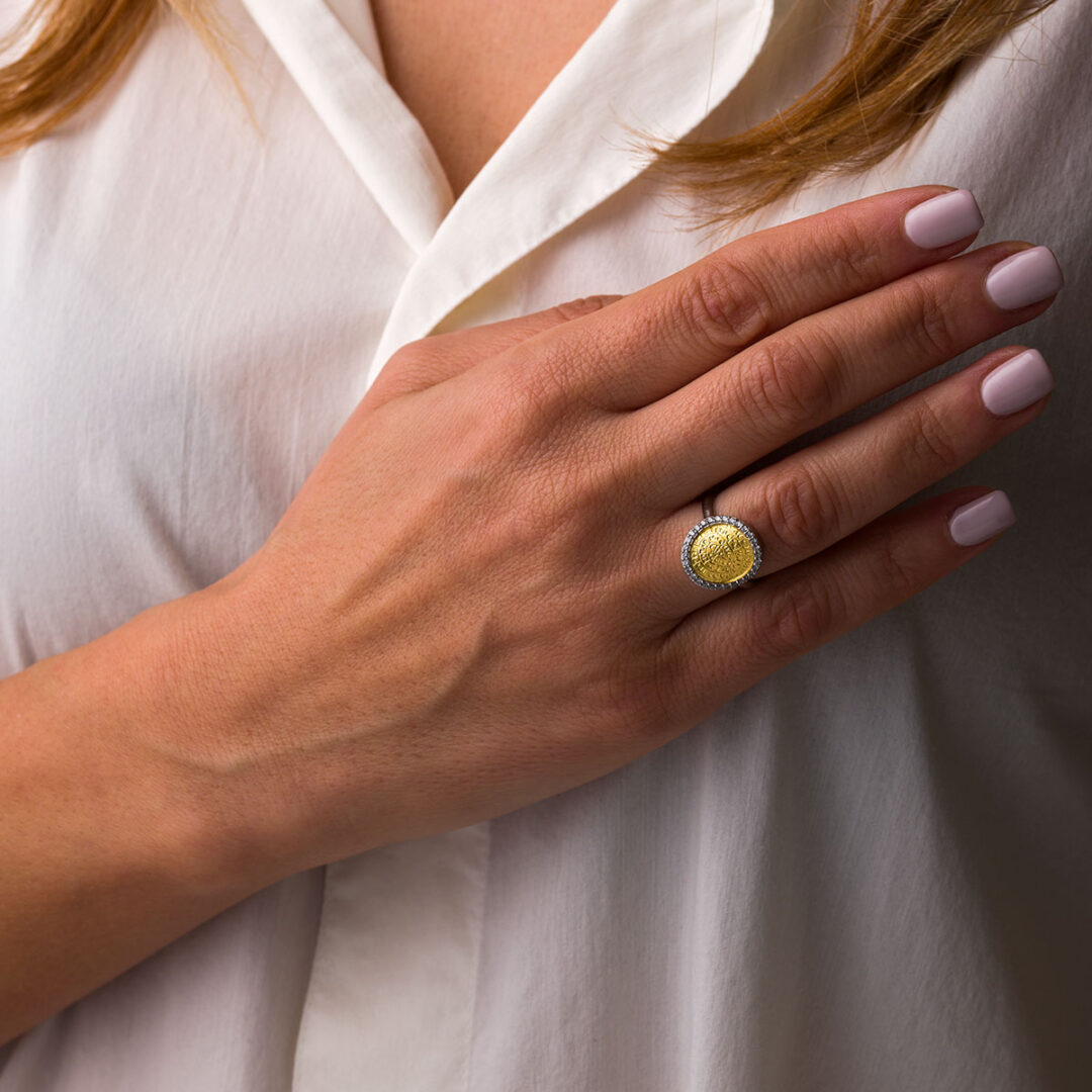 Phaistos Disc Ring with Zircon – Sterling Silver and Gold Plated