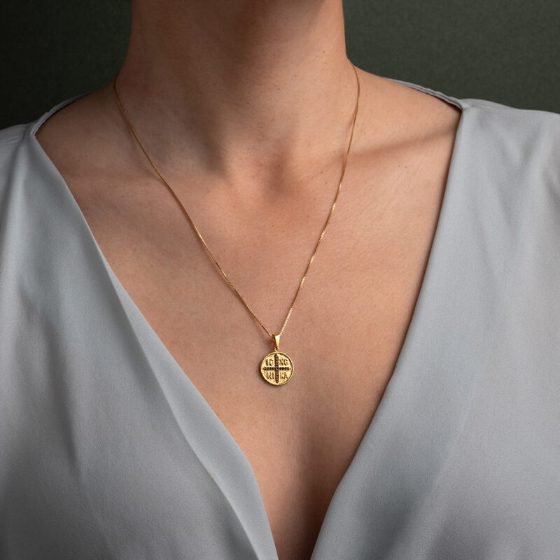 Round Constantino Cross with Zircon Stones – 9K Gold