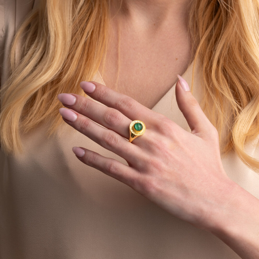Round Malachite Ring in 925 Sterling Silver Gold Plated
