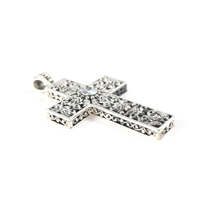 Byzantine Cross Pendant Silver 925 with a Precious Stone