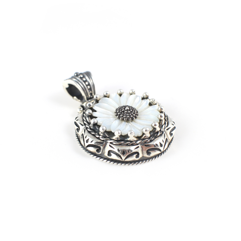 A sterling silver pendant featuring the spiral symbol with a blue opal stone.