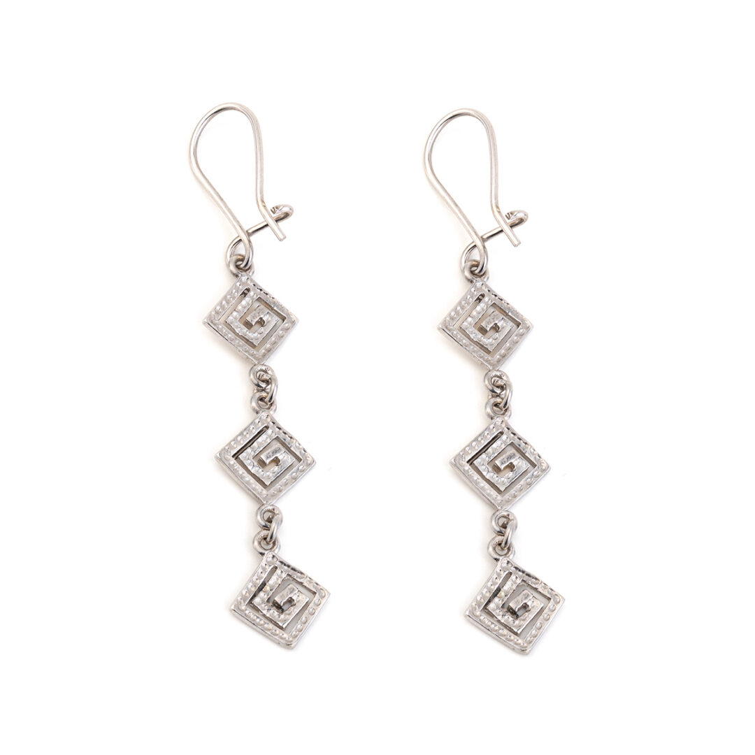 Triple Greek Key Drop Earrings – 925 Sterling Silver