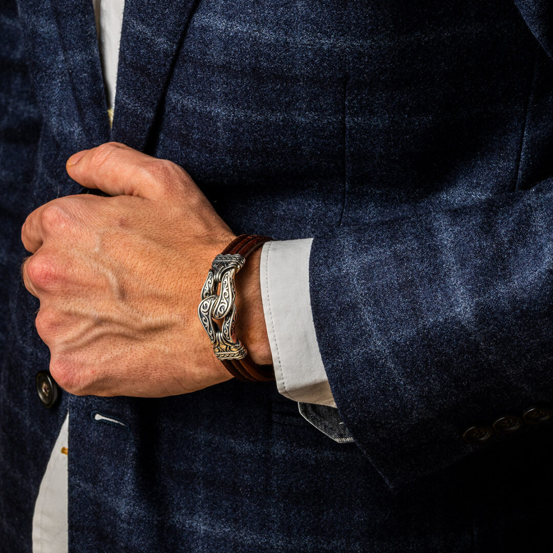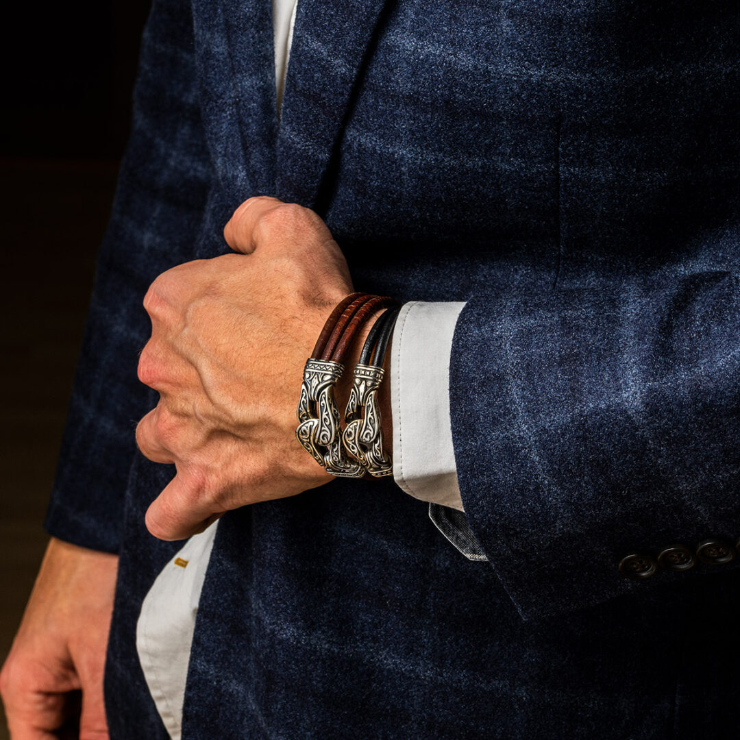 Triple Row Leather Bracelet Hercules knot – Sterling Silver Yianni Jewelry