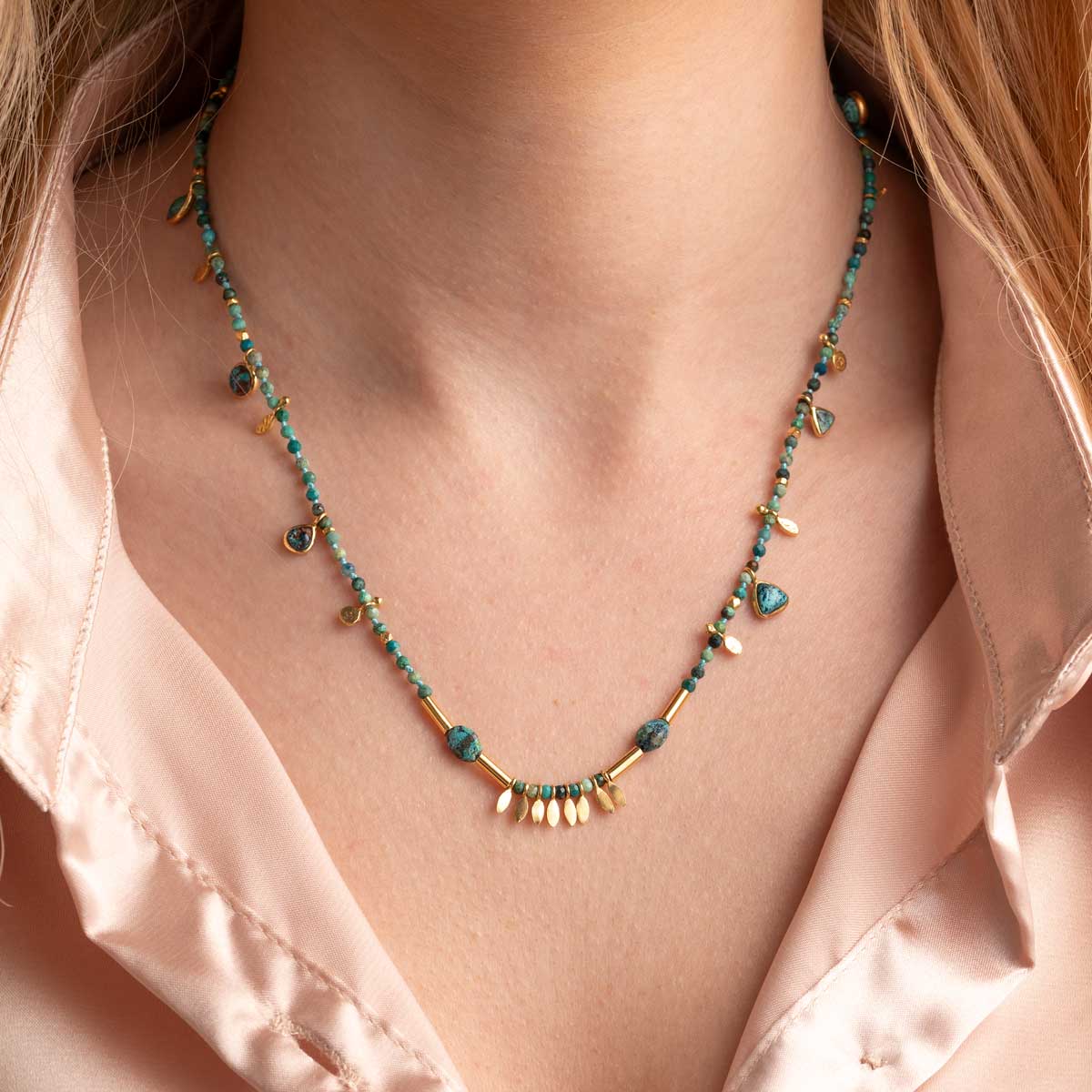 Turquoise Beads Necklace in 925 Sterling Silver 18K Gold Plating