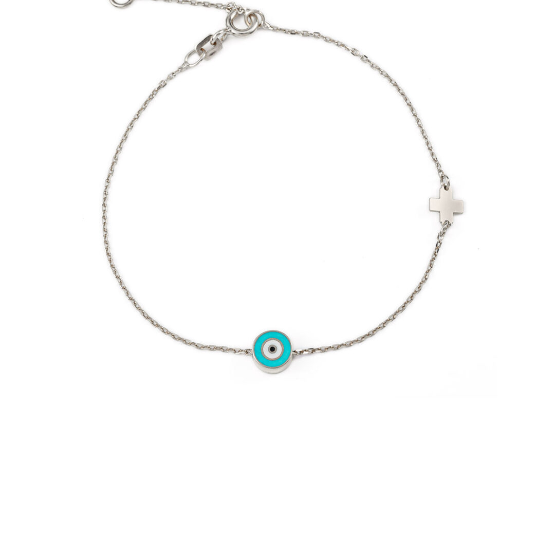 Turquoise Enamel Eye Bracelet with Cross – 925 Sterling Silver