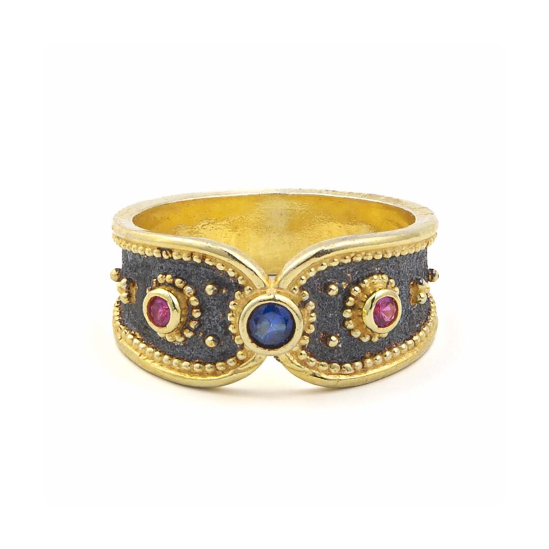 Two Tone Byzantine Ring with Zircon – Sterling Silver and 18K Gold Plating