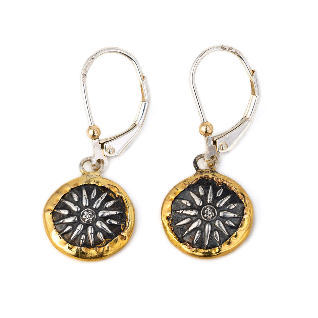 A beautiful pair of earrings inspired by the ancient Vergina sun symbol.
