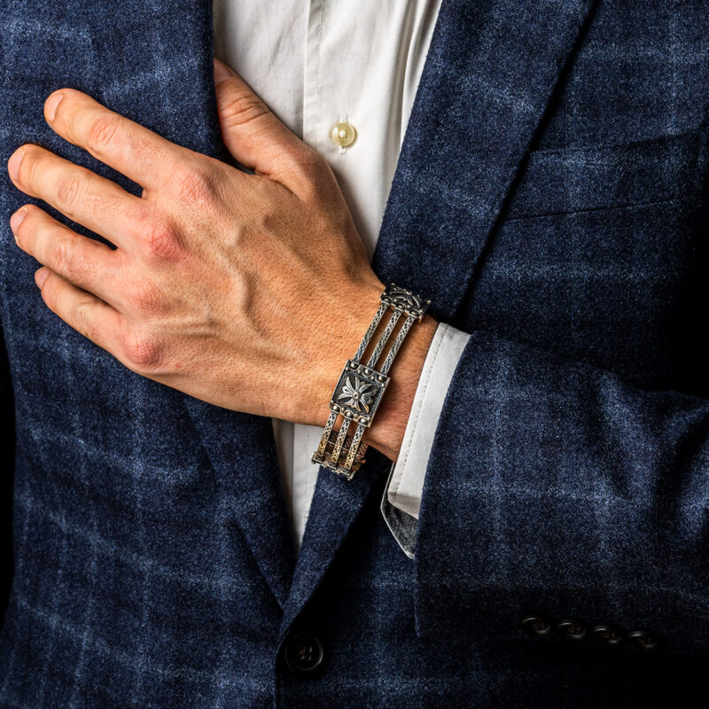 Bracelet inspired by the ancient Greek Vergina Sun symbol.