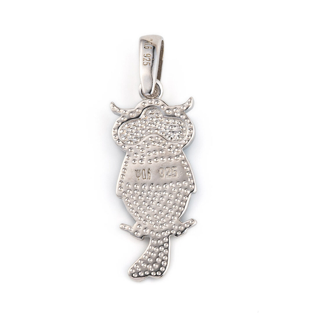 This is a silver pendant representing the owl – the symbol of Athena. The pendant is decorated with blue opal.