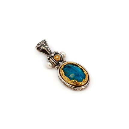 Byzantine Ring with Apatite Doublet Stone and Natural Pearl