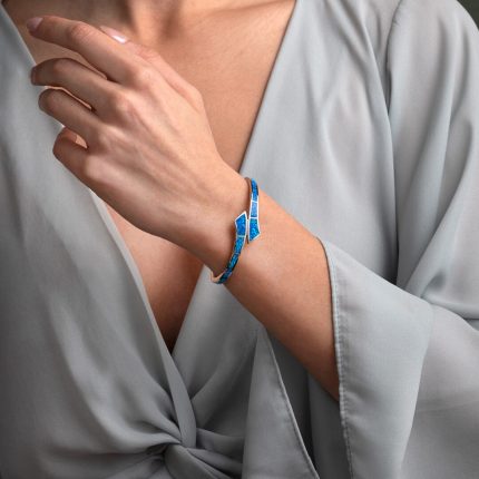 Blue Opal Cuff Bracelet – 925 Sterling Silver