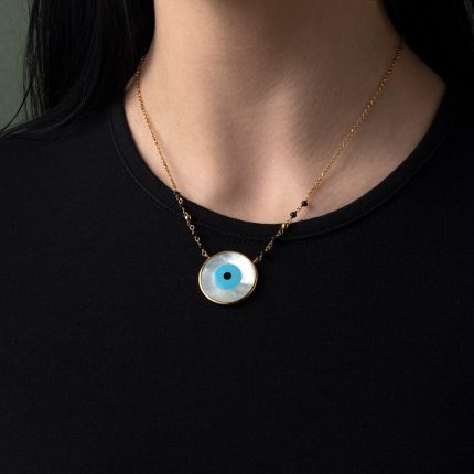 Sterling silver Chain Necklace with Beads and a Colored Eye Stone